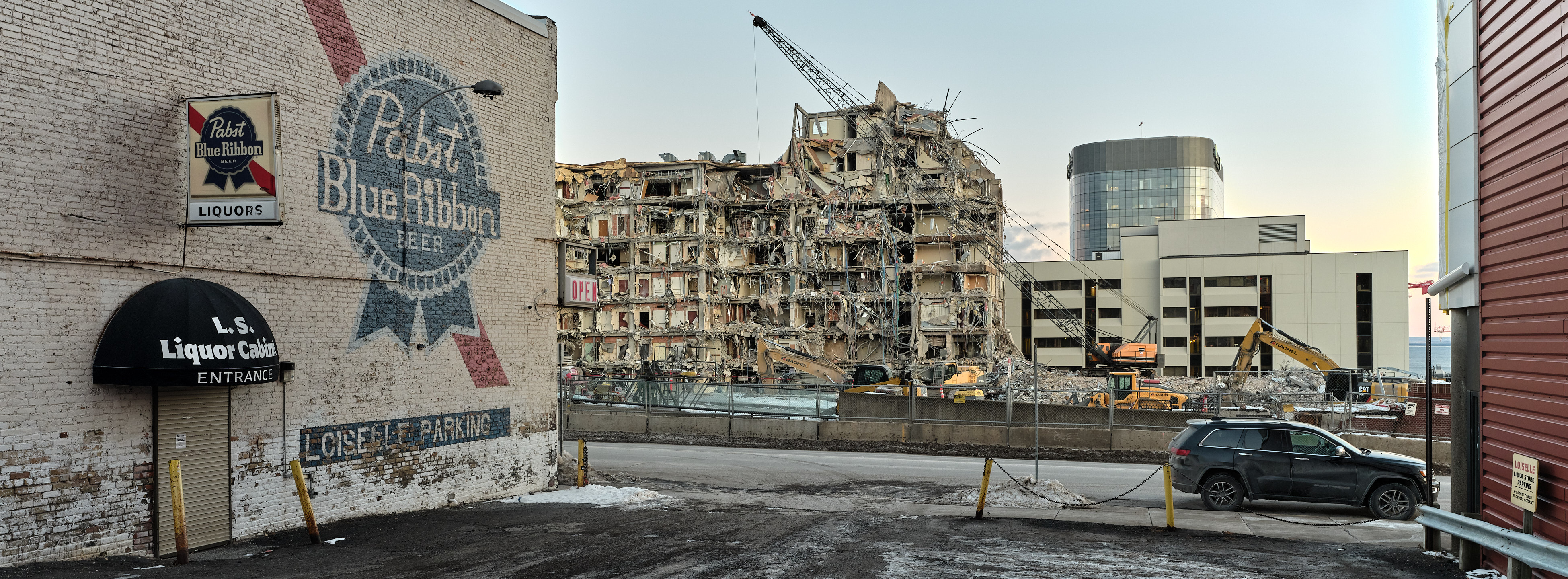 After I decided I wanted to photograph as many of these signs along with the urban landscapes around them, I started prowling on Google maps looking for their locations and began building a map of where these bar signs might still exist. Many of the signs I have found tend to exist outside of densely populated areas. Rural towns and regions that the Google street view team hasn't seemed to have passed through since 2008. I soon came to realize that these signs seem to be dying off at a pretty rapid rate. The very first time I drove out to where I found a cluster of signs, the entire block of buildings at the location had been razed. Every outing I have done since has led me to one or more places where the sign no longers exists that was there the last time the Google Street View car had driven past. Suddenly this whole quirky collection of photographs feels like a race against time.